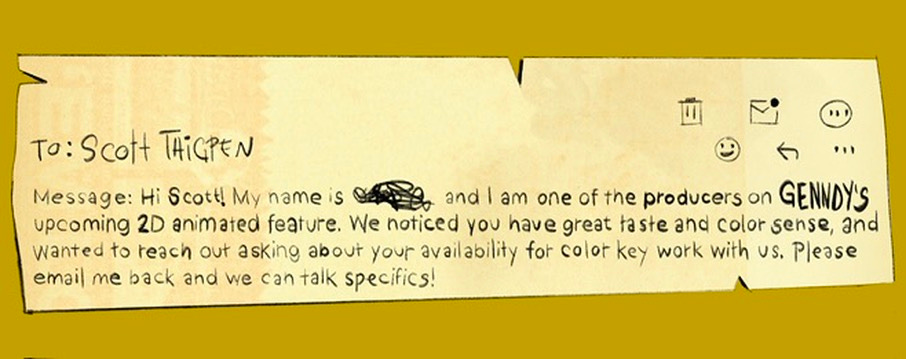 I looked up this “producer’s” name on the Sony Animation website, and there he was—a legit guy working for a legit company, and I’d legit get to work for Genndy Tartakovsky and Scott Wills.