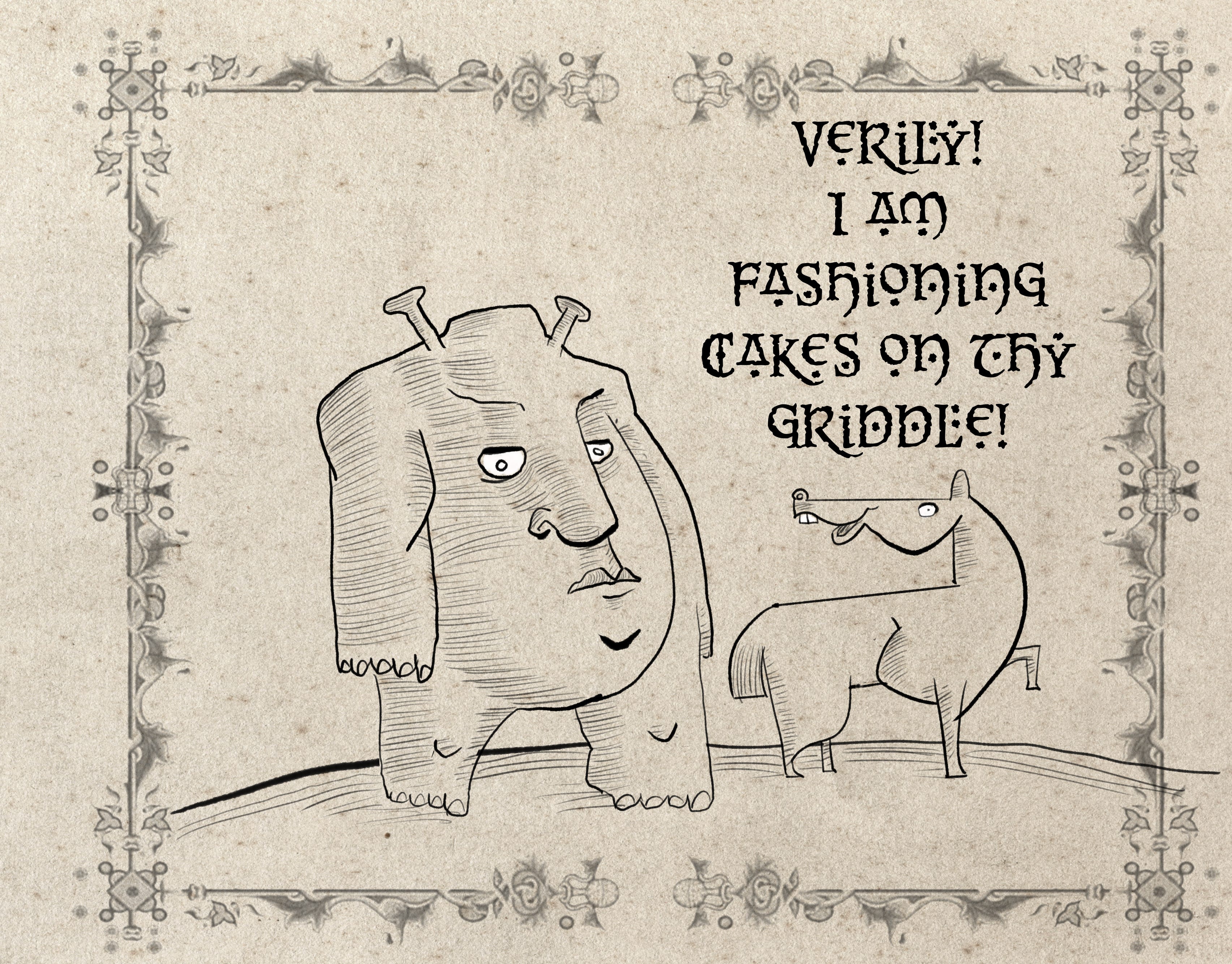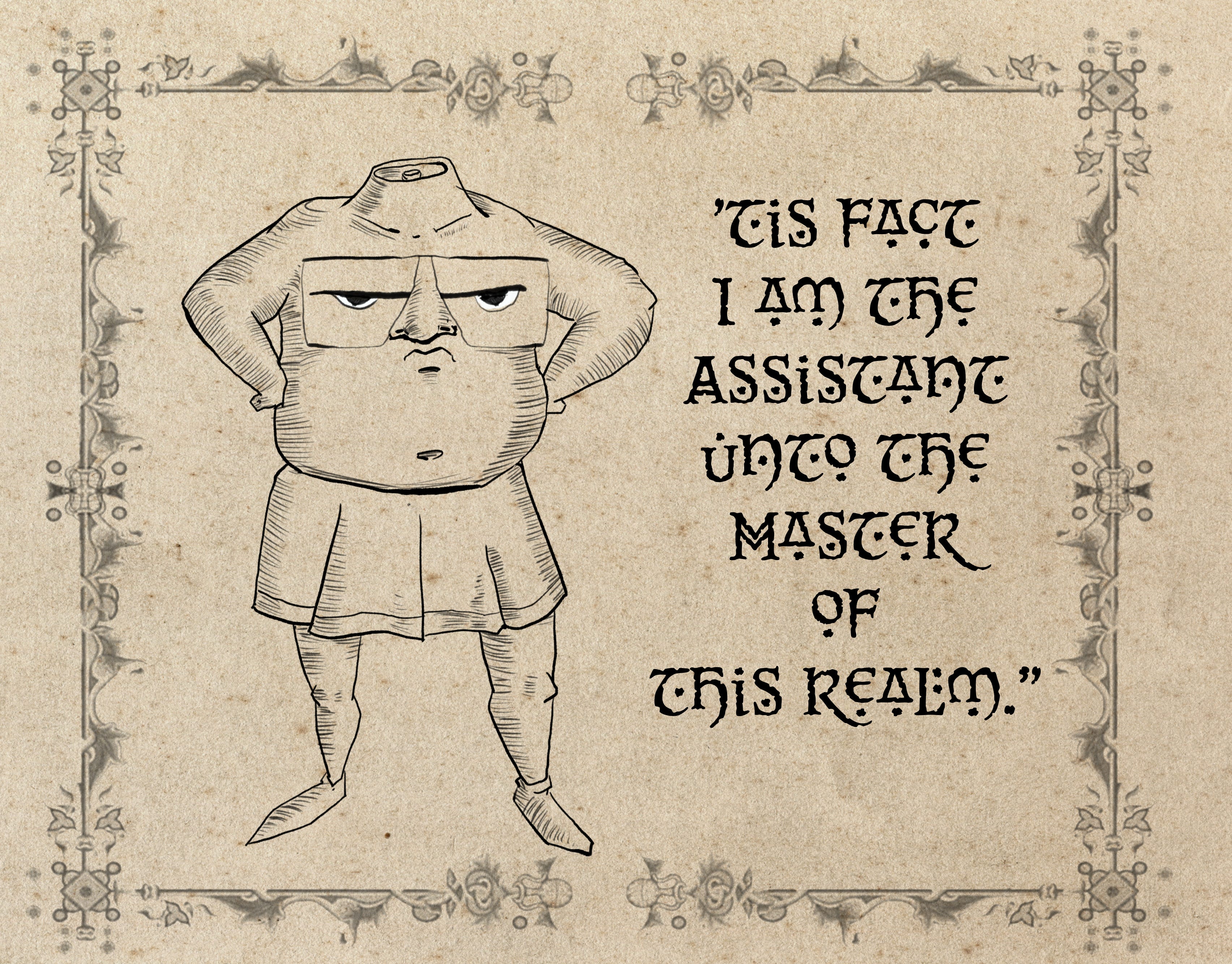 I got off track… (a common theme), The media studio needed additional fairy tales, drawn in the Canterbury Tales style—like the book Shrek uses as toilet paper to wipe his green hairy tush in the first movie. You know, the scene right before the ultimate bro song by Smashsmouth kicks in. The studio knew I could draw in that style and thus I was hired by the “assistant to the assistant manager.”